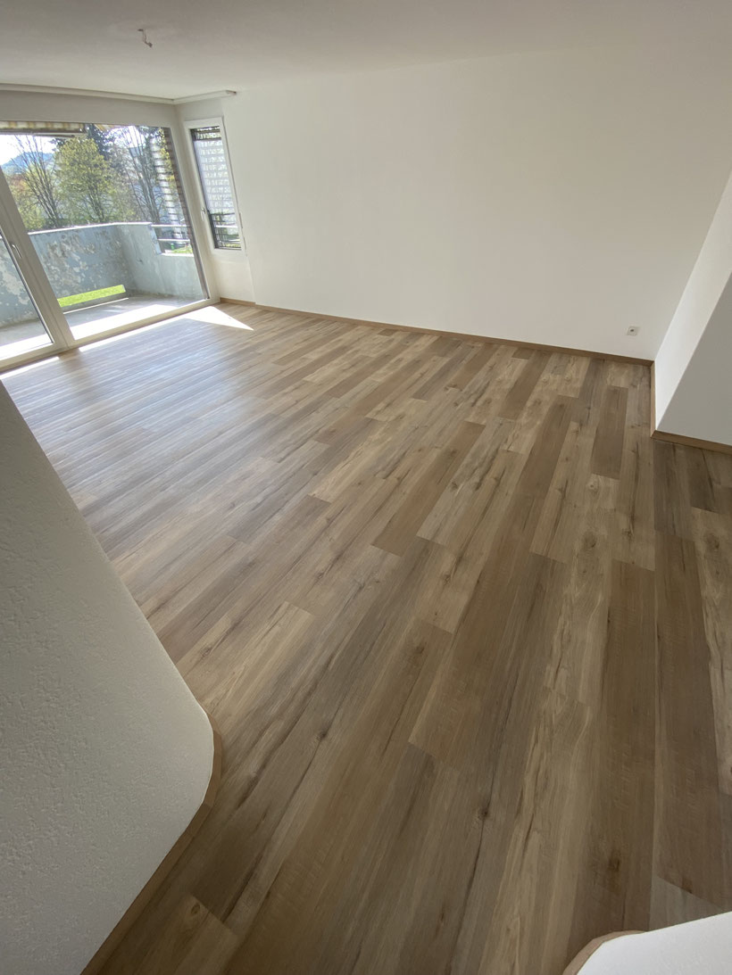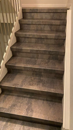 Treppensanierung mit vorgefertigten Treppennasen in Vinyl seitlich sauber angeschnitten.