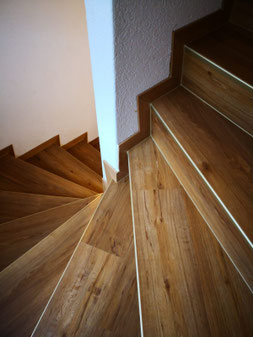 1/2 gewundene Treppe mit Alukanten und Holzsockel Eiche
